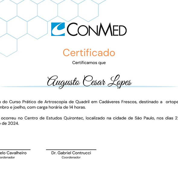 Ortopedista especialista em quadril, com experiência em artroscopia e atuação reconhecida em centros de referência no Brasil.